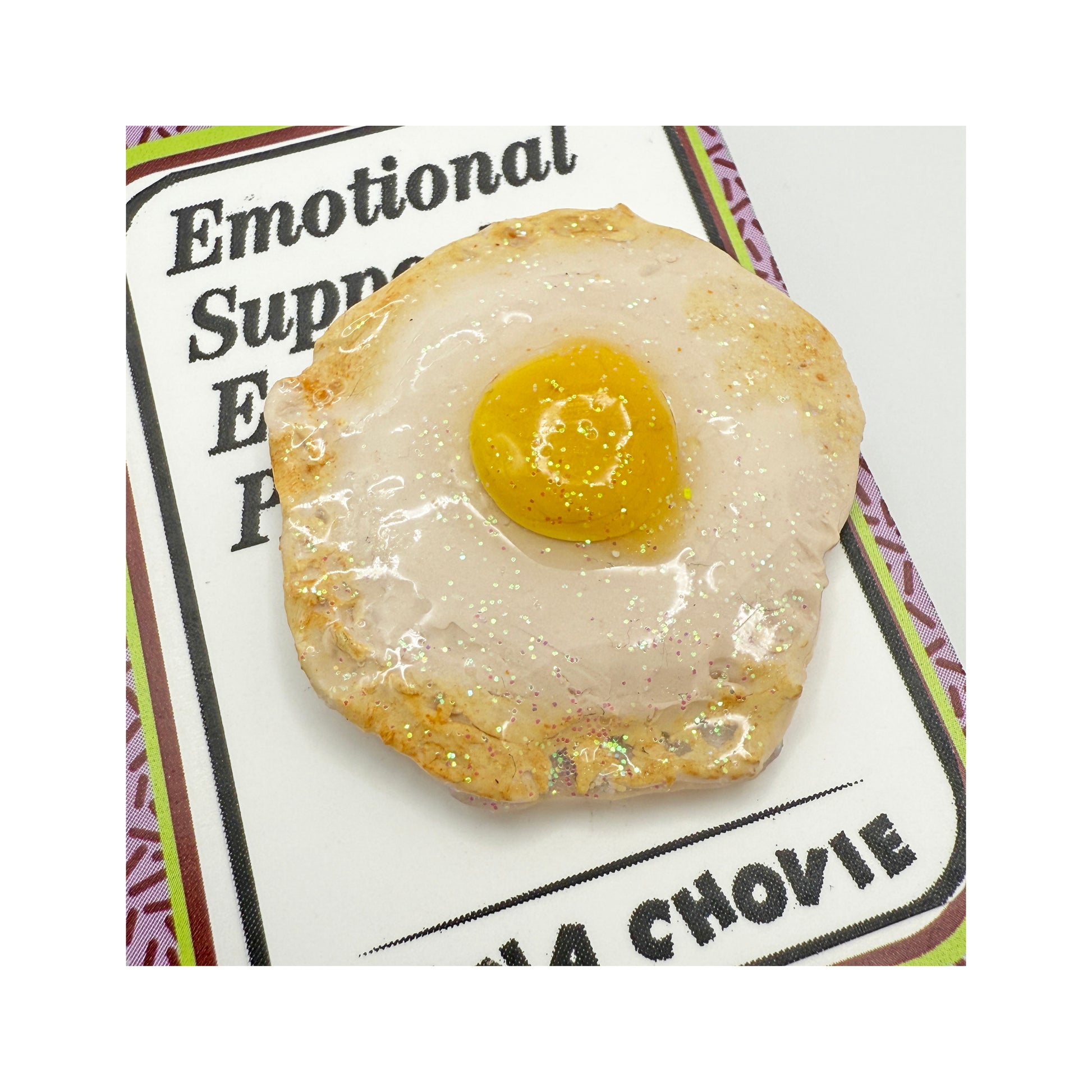 One handmade polymer clay egg with resin coating. Tie tack pin style backing.