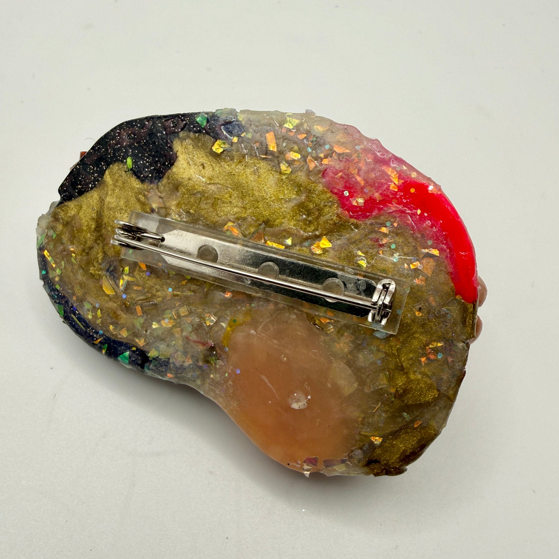 Traditional brooch pin backing.