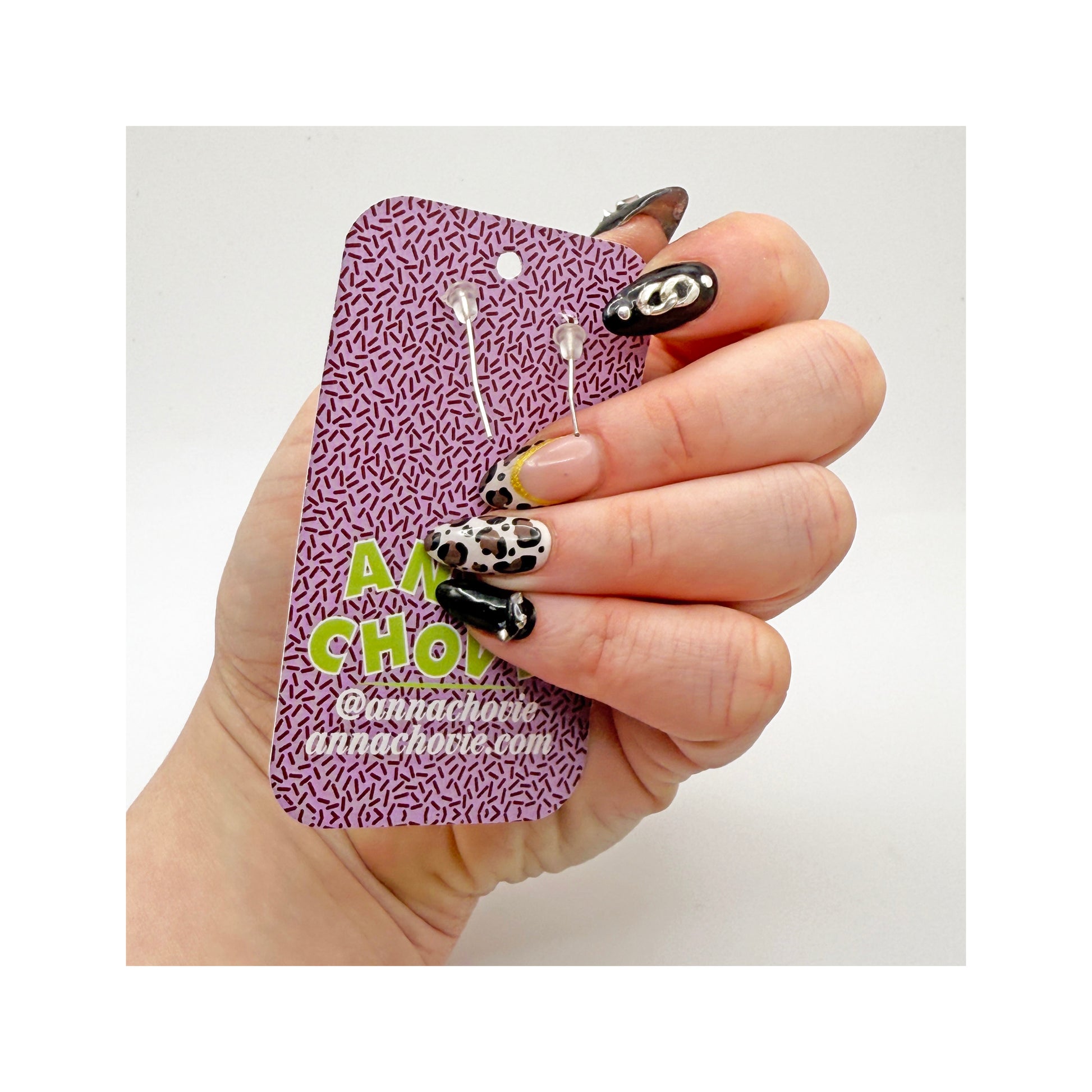 Pair of handmade polymer clay pickles with nickel-free earring posts.